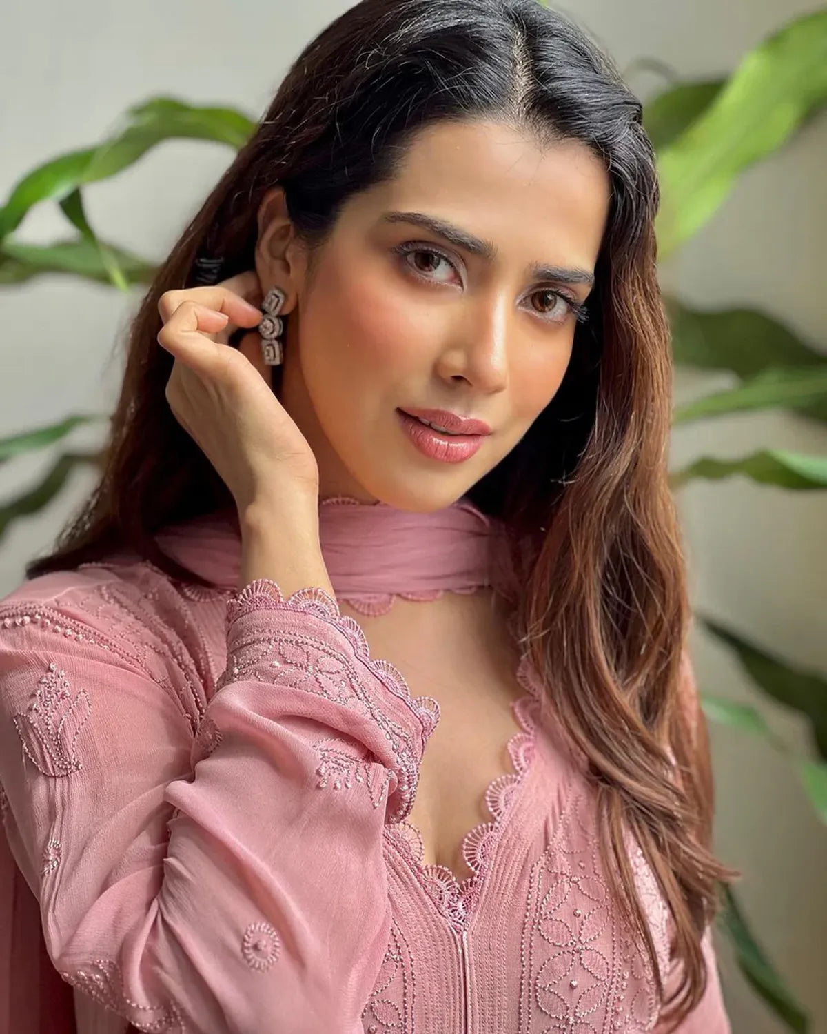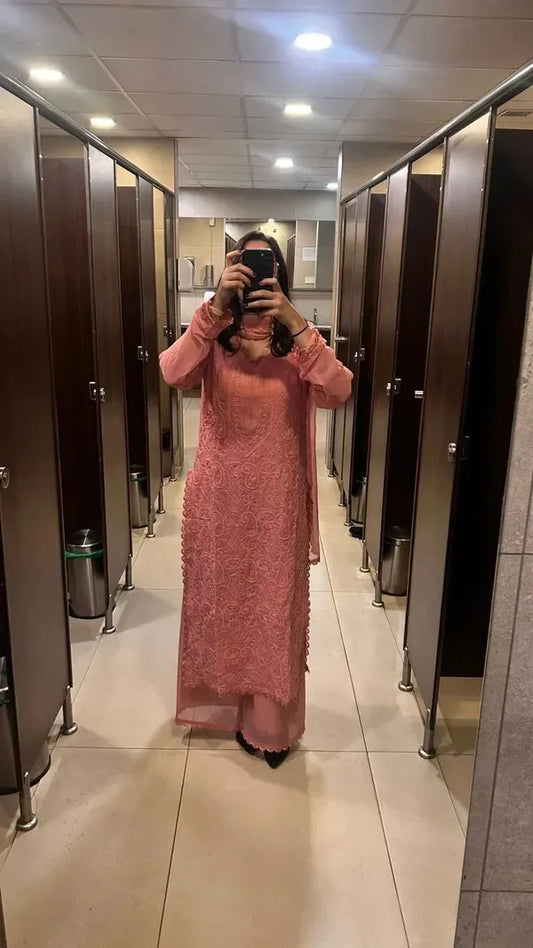 Peach Cotton Bloom Embroidery Chikankari Kurti Plazzo with Dupatta Set