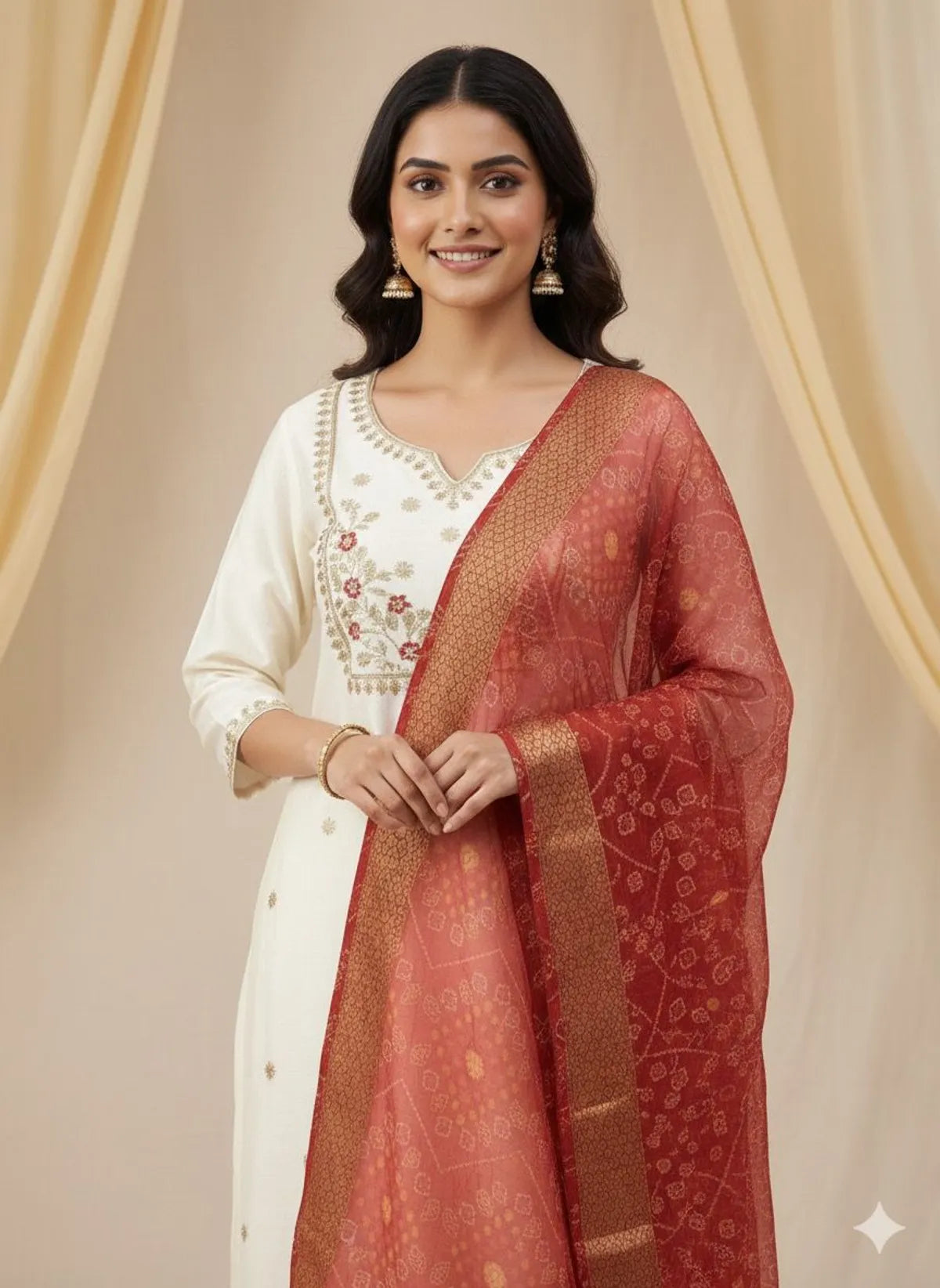 The kurti comes with a soft silk lining for enhanced comfort, while the lightweight dupatta features subtle detailing that completes the look beautifully. Perfect for office wear, daytime events, casual outings, or light festive occasions, this ensemble offers effortless style with timeless appeal.